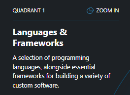 Below the radar visualization, you'll find a list of all quadrants and the technologies within each quadrant, organized by ring.
